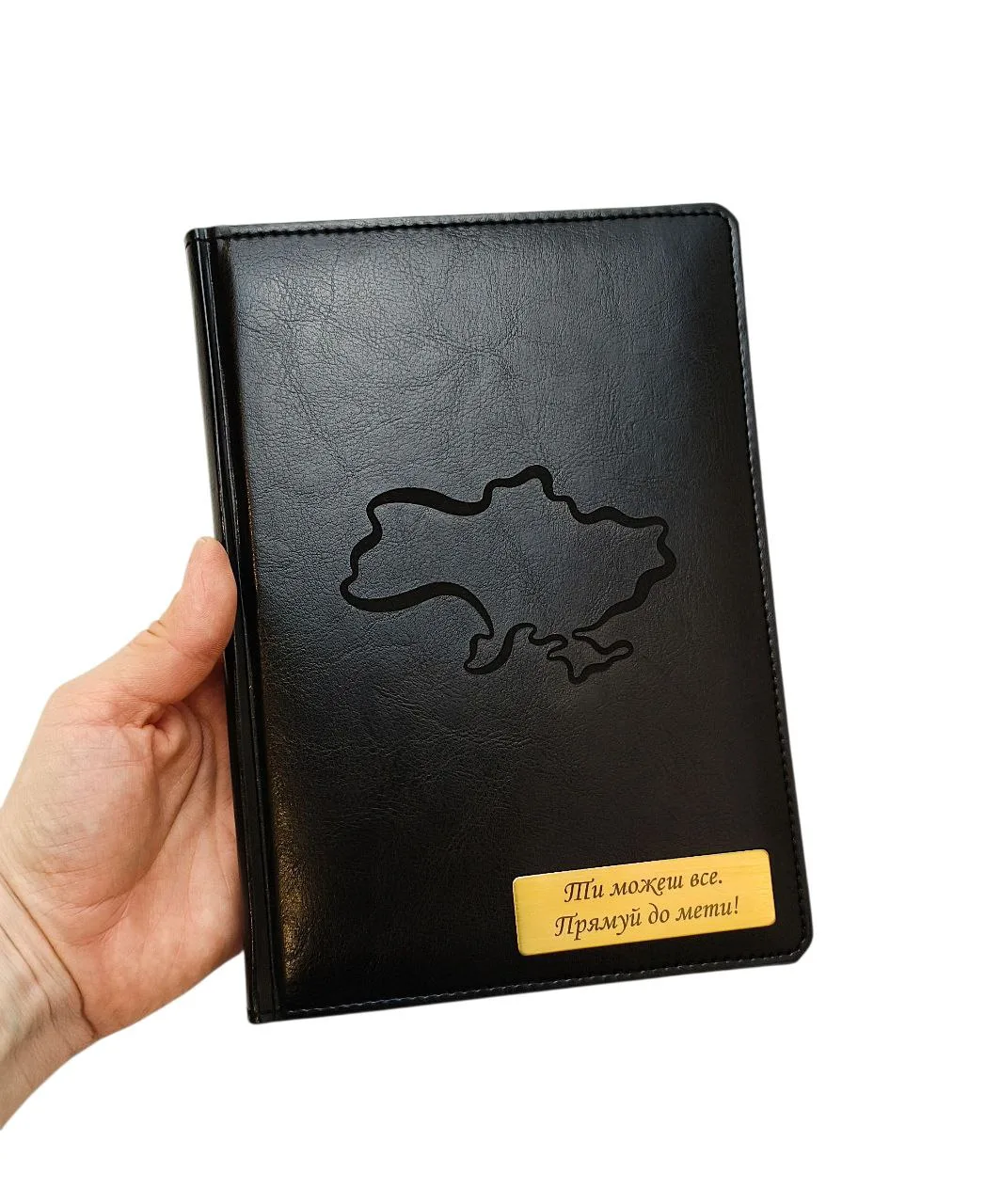Блокнот Щоденник патріотичний з гравіюванням Карта України, чорний глянець