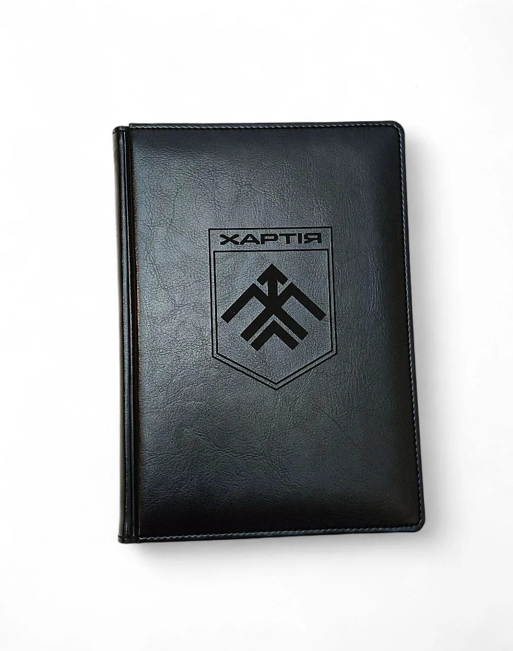 Стильний та практичний щоденник у чорній глянцевій обкладинці з гравіюванням емблеми Хартія. Це не просто блокнот, а значущий подарунок для військового, який підкреслює повагу, вдячність і підтримку.