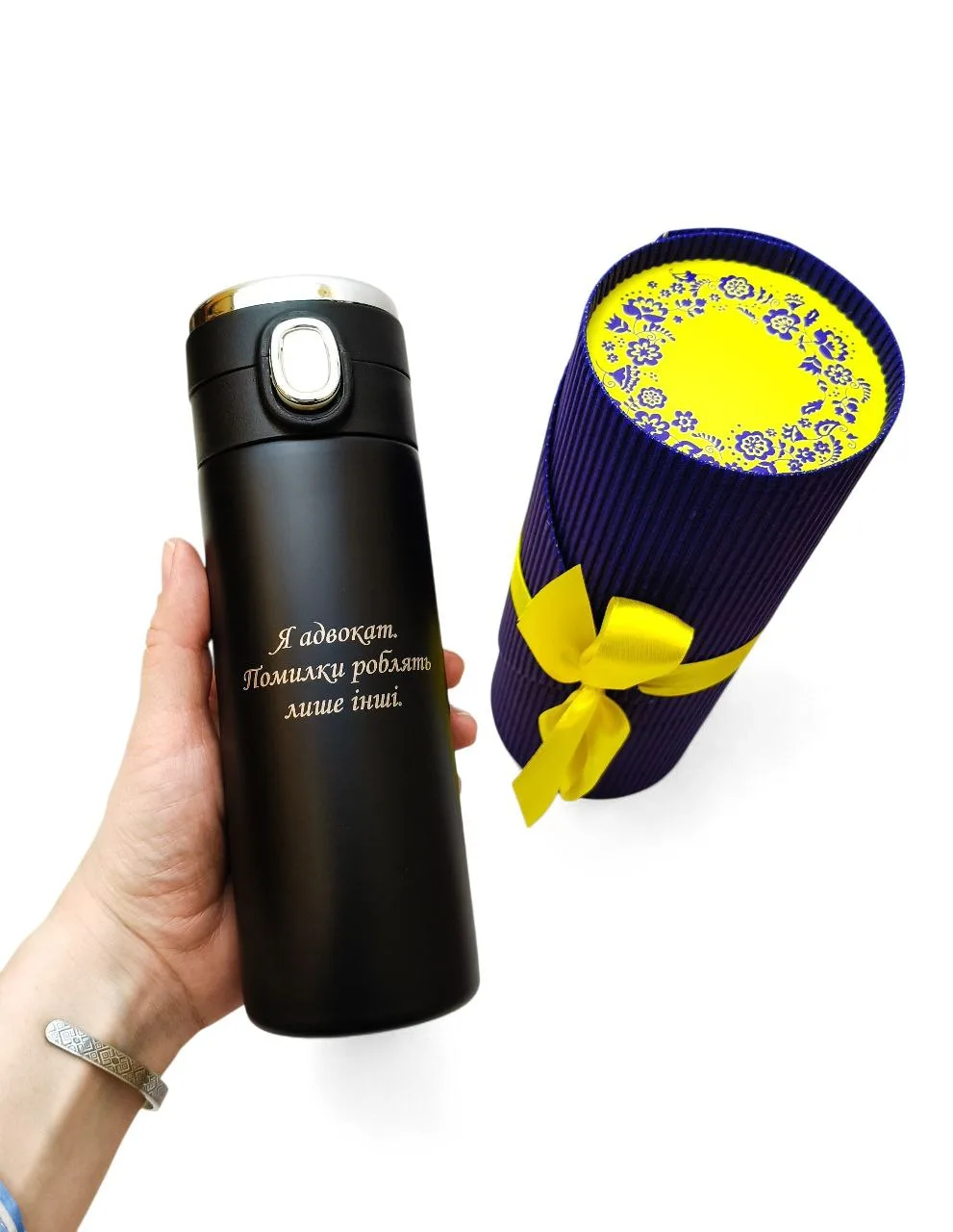 Стильна, іронічна та практична — ця термочашка з гравіюванням для адвоката стане улюбленим аксесуаром у робочих буднях і поза ними.