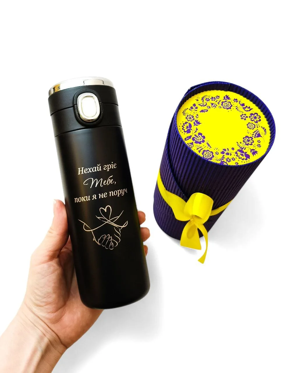 Ніжна фраза та символ єдності роблять цю термочашку справжнім емоційним подарунком. Вона зігріває не лише напоєм, а й думками про того, хто поруч у серці — навіть на відстані 💑