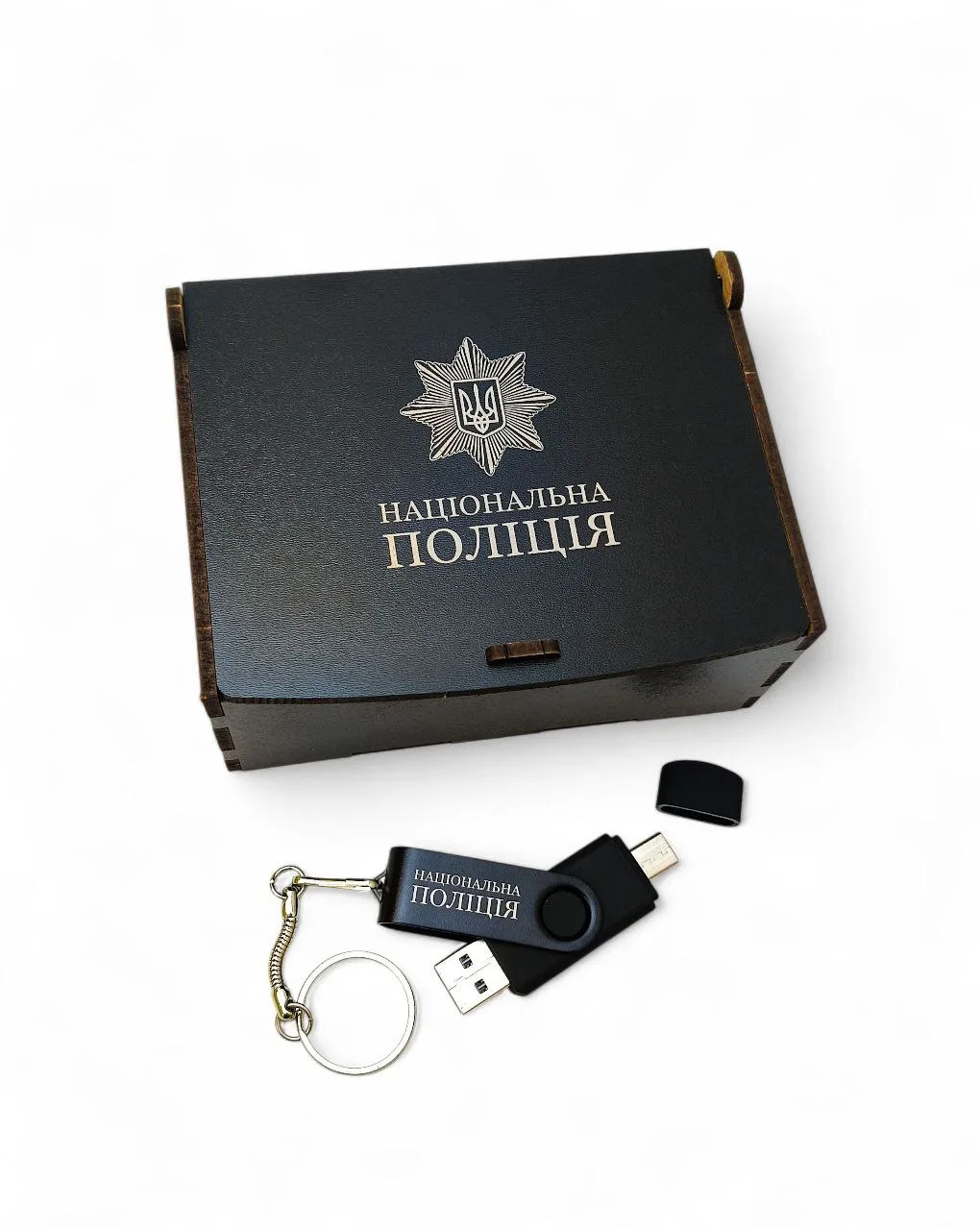 Універсальна флешка OTG 128 ГБ у стильній дерев’яній коробці з гравіюванням — це не просто сувенір, а корисна річ, яка стане в пригоді кожному.
