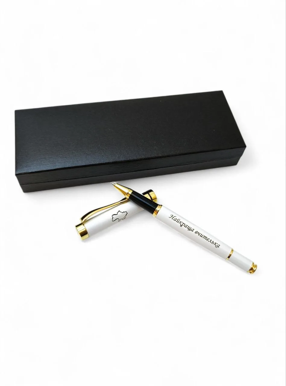 Стильна, елегантна ручка преміум класу — витончений подарунок для близької людини, вчителя, колеги чи ділового партнера. Витончений білий колір корпусу з глянцевим покриттям у поєднанні із золотистими деталями створює відчуття статусу та впевненості. Лазерне гравіювання доповнює зовнішній вигляд.