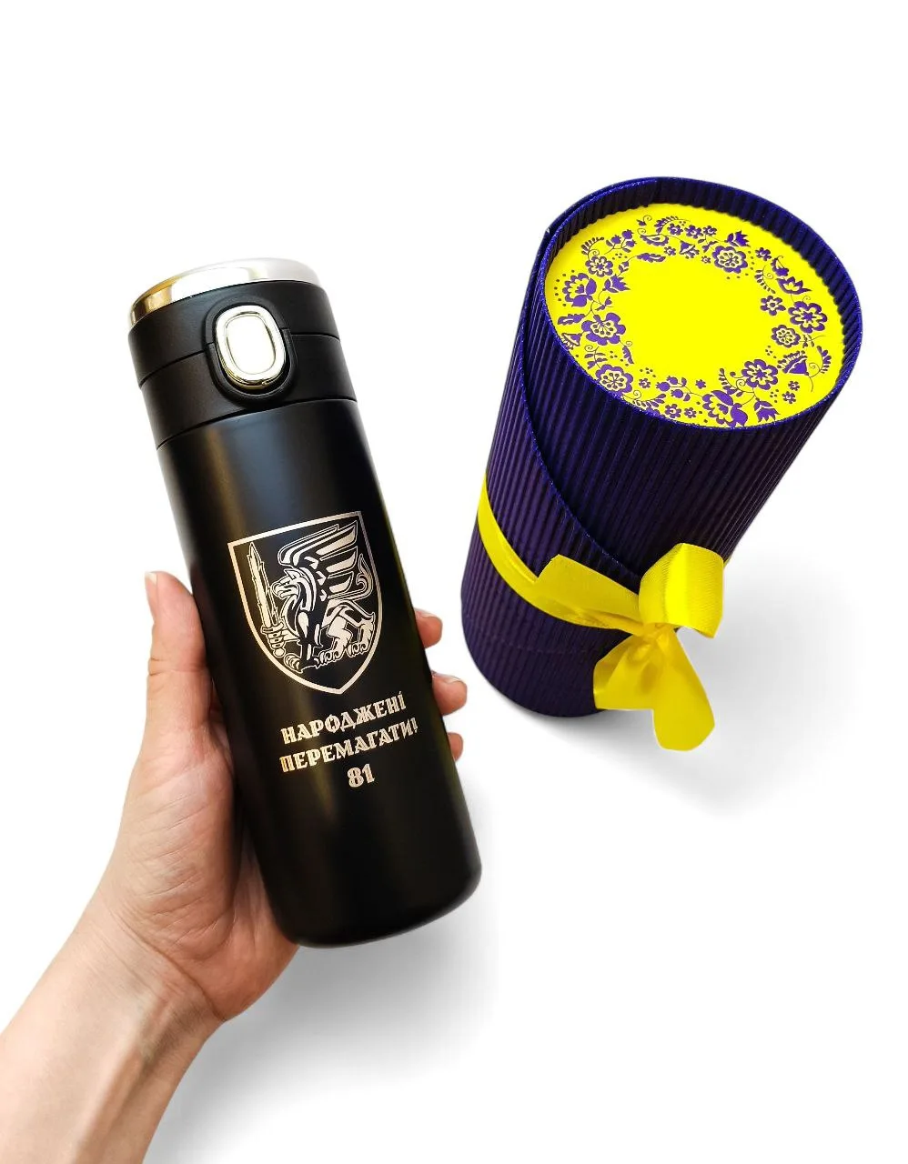 Стильна та потужна термочашка з емблемою 81-ї окремої аеромобільної бригади — це символ сили, честі та незламності. Вона створена для тих, хто служить, підтримує і пишається своїми Героями. Кожен ковток — як нагадування про відвагу, єдність і віру в перемогу 💙💛