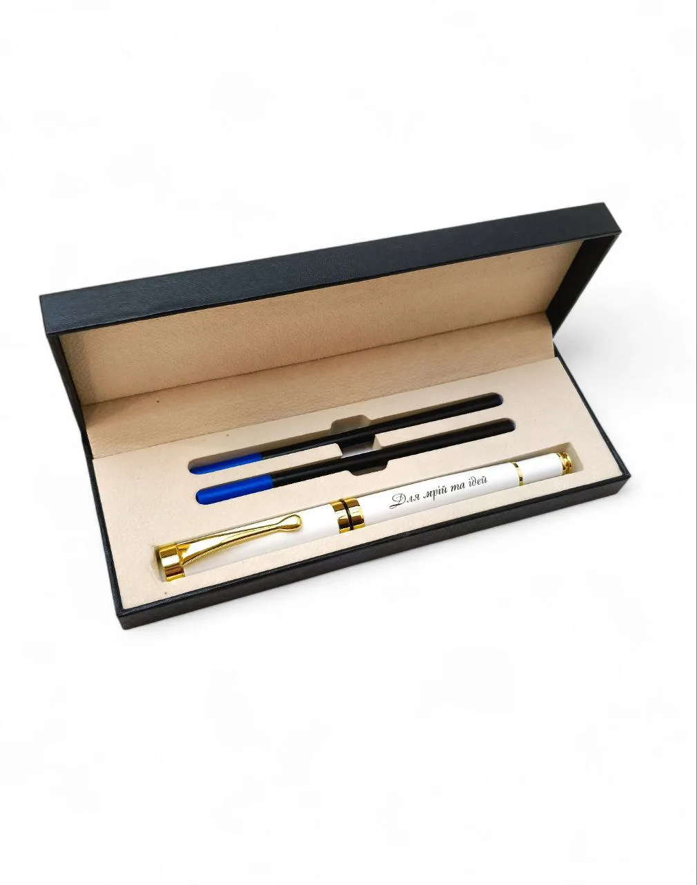 Преміальна модель ручки в оригінальному подарунковому футлярі з запасними стержнями.