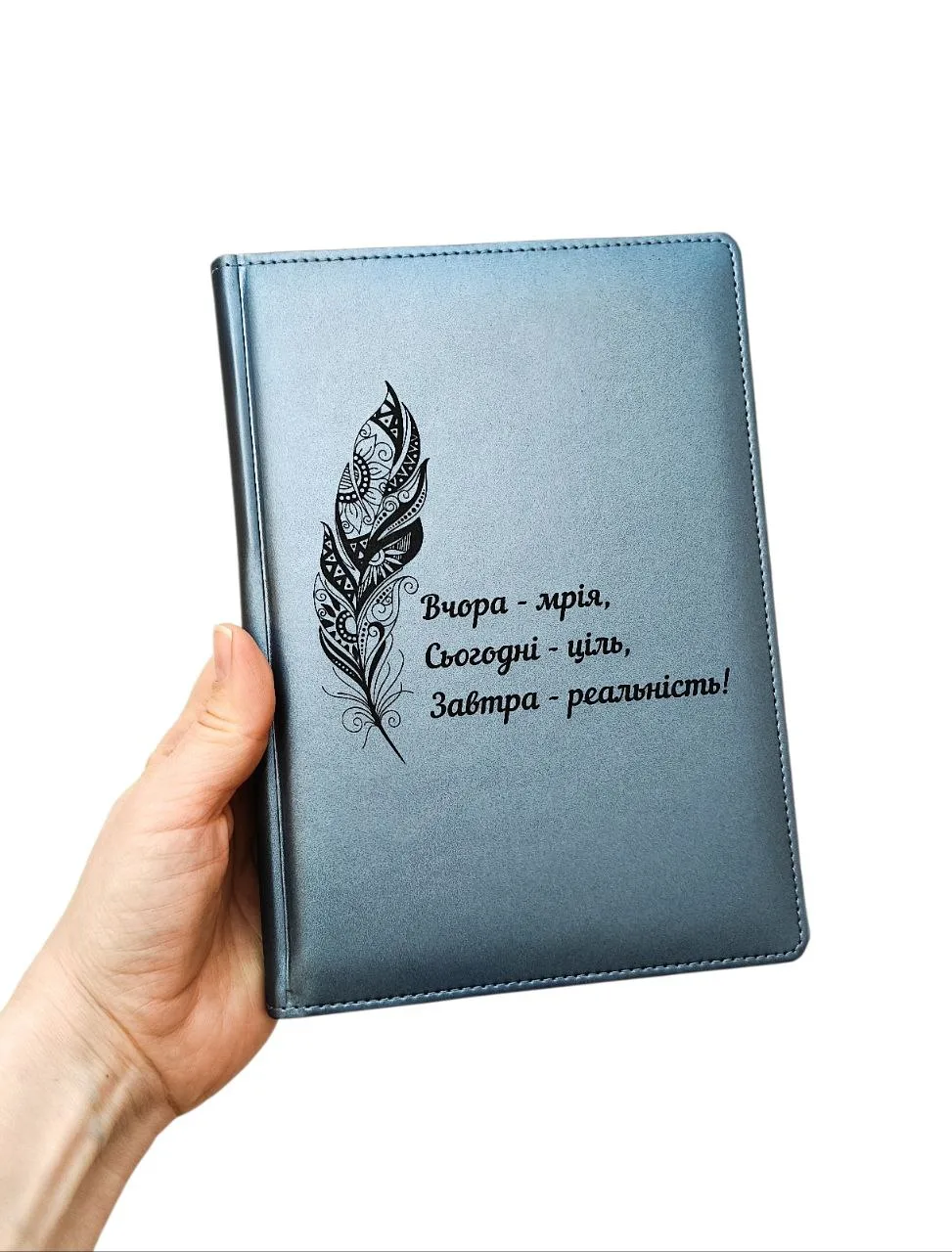 Неймовірний колір обкладинки, елегантне гравіювання пера та мотивуюча цитата — чудове поєднання для тих, хто цінує гармонію стилю та змісту.