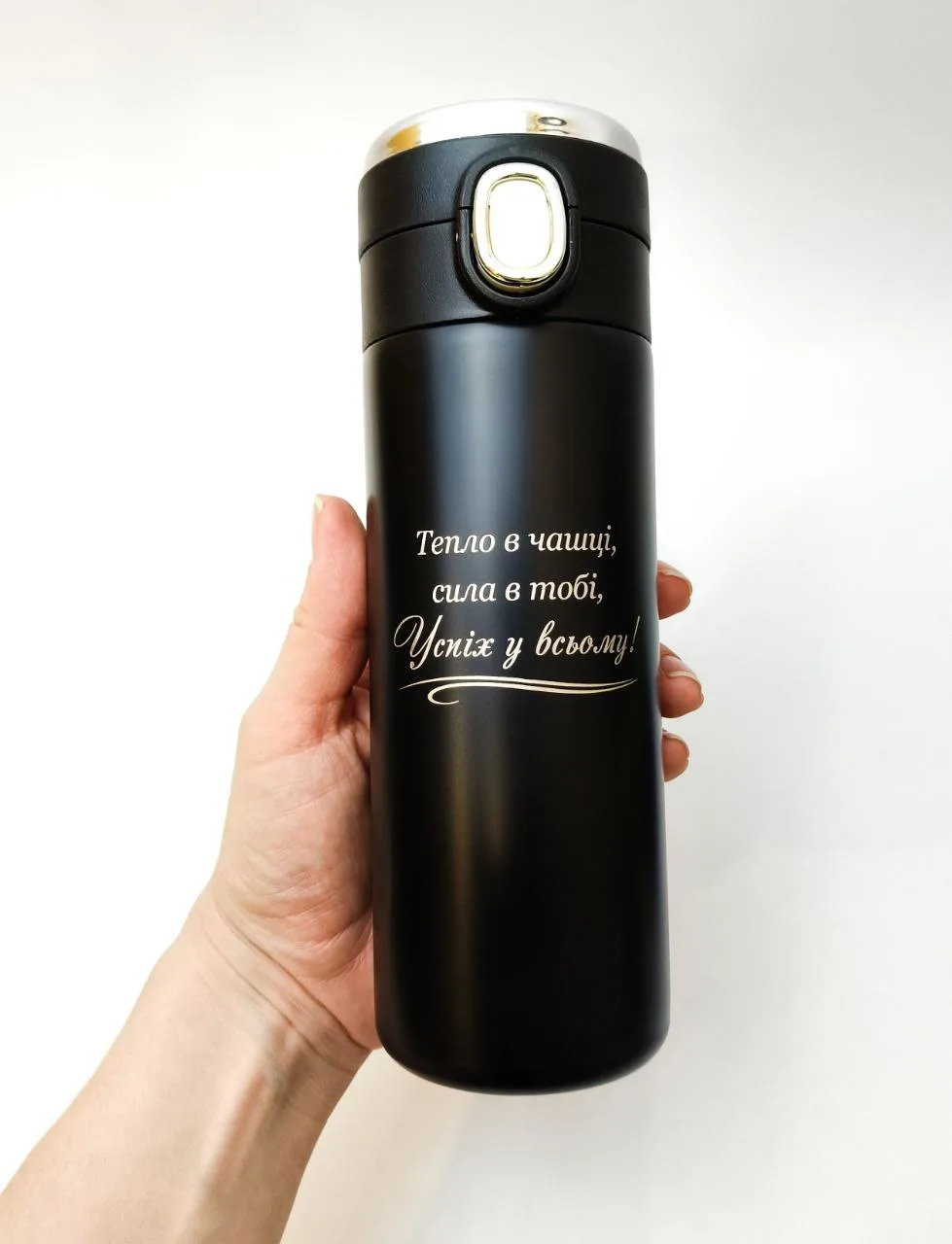 Стильна термочашка з мотиваційним гравіюванням — це не просто аксесуар, а щоденне нагадування про внутрішню силу, віру в себе та рух уперед. Вона зігріває не лише напоєм, а й словами 💛